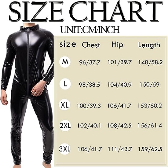 • As a men's wetlook bodysuit, it has a distinct style that can be used in different contexts. It might also be suitable for fashion shows or themed parties, making a bold fashion statement.